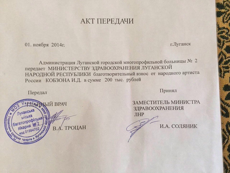 Продолжим по "делу врачей". Приказ на устранение проблемы главврача республиканской больницы был спущен прокурорам. Соляник выдал приказ об открытии бомбоубежища в подвалах больницы. Далее главврачу подписали наконец-то бумагу на отпуск, давно замаринованную под сукном у Соляника. Он отбыл с территории ЛНР и в это время научившиеся гениальные прокуроры создали этот склад. Недоразвитый действительно на аппаратном совещании числа 3-4 февраля сказал о каких-то обнаруженных прокурорами складах, чем спалил всю свою контору, главный дэбил не мог не отличиться. В больничку 3-го числа прилетели прокурорские уепаны с сигналом о том, что видимо вывозят с этого их склада в подвале лекарства, которые они туда сложили. Был большой кипеж, но выяснилось, что это перевозят лекарства из одного отделения до другого внутри больницы со всеми сопровождающими документами. И ситуация затихла до 10 февраля. Брать больничку было рано, т.к. главврач всё ещё был в отпуске и за территорией ЛНР. Вот когда он вернулся, то мы и увидели всё это маскишоу с ломанием стен и вскрытием схронов с лекарствами. Посмейтесь вместе с нами над этим цирком. Мы так думаем, что в прокуратуру берут исключительно умственно-отсталых, они там как раз к месту. Прокуроры научились еще и информационному сопровождению своих преступлений и выдали в интернет информацию о том, что Вольман был назначен главврачом министром Айрапетян по протеже от Кобзона, который является руководителем землячества Донбасса в России. Что тут можно сказать, мы так думаем, что Кобзон даже не знает кто такой Вольман. Мы так же знаем, что Кобзон, приезжая к нам в республику, помогал Луганским больницам в том числе и личными средствами. В 14-м году помощь была выдана 2-й городской больнице. Затем туда приехал Соляник и забрал эти деньги. У нас есть вот такой документ: